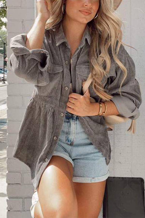 Corduroy Peplum Shirt Jacket