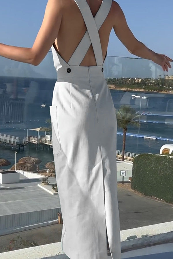 Solid Color Square Neck Open Back Pocket Casual Maxi Dress