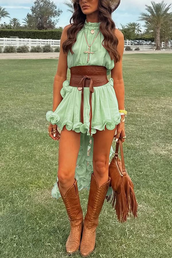 Romantic Drama Chiffon Wavy Ruffles Halter Irregular A-line Top (Shipp