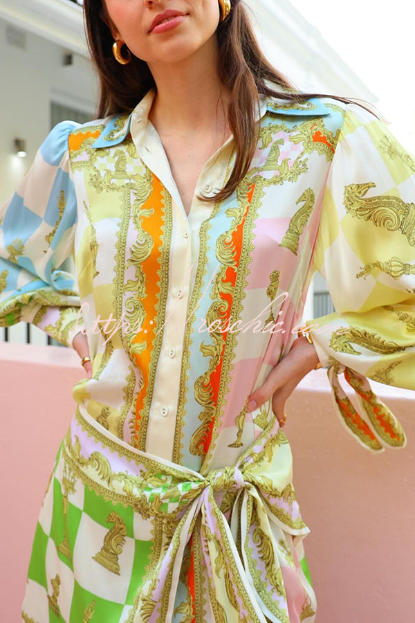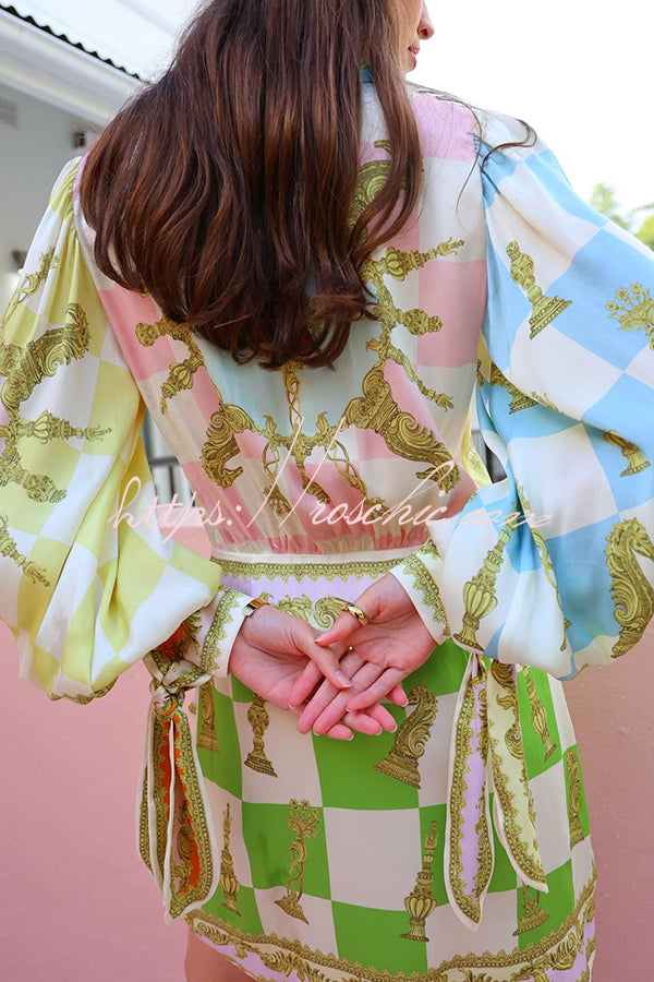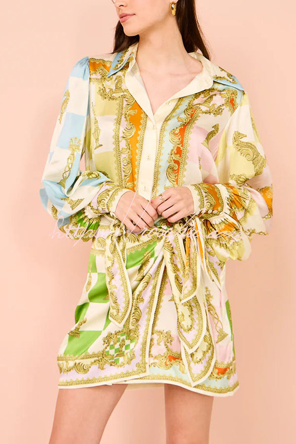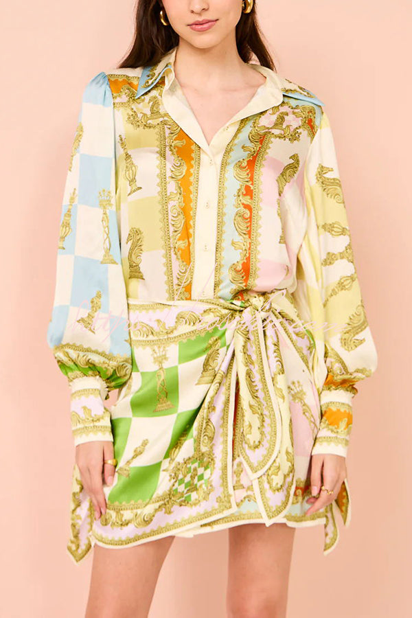 Vacay Mode Satin Unique Print Tie-up Design Wrap Mini Dress
