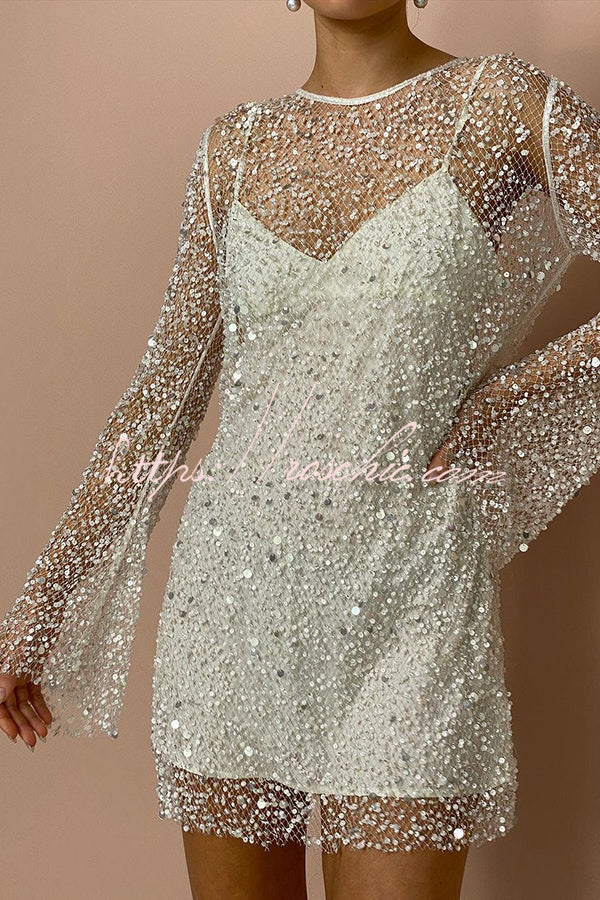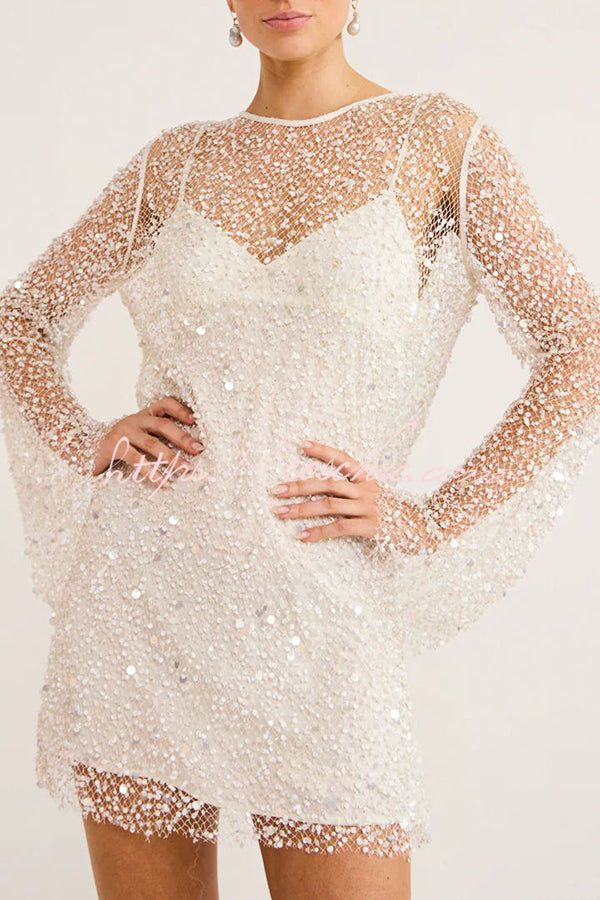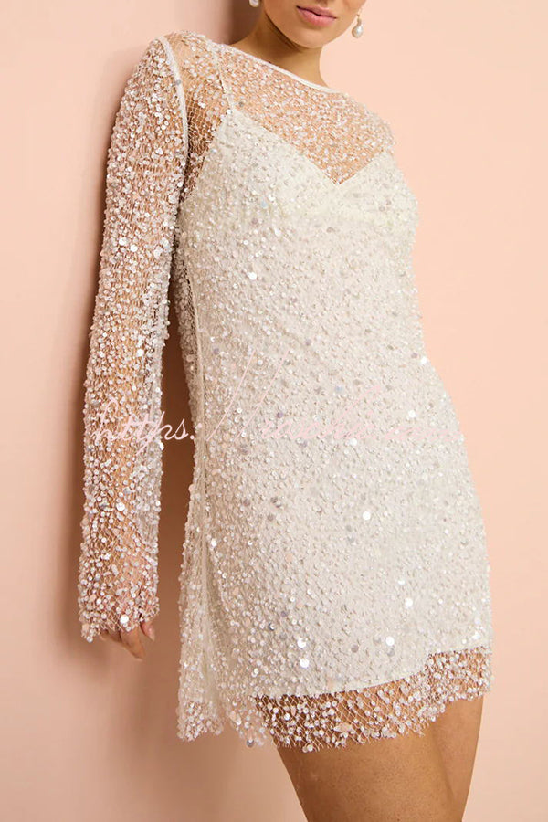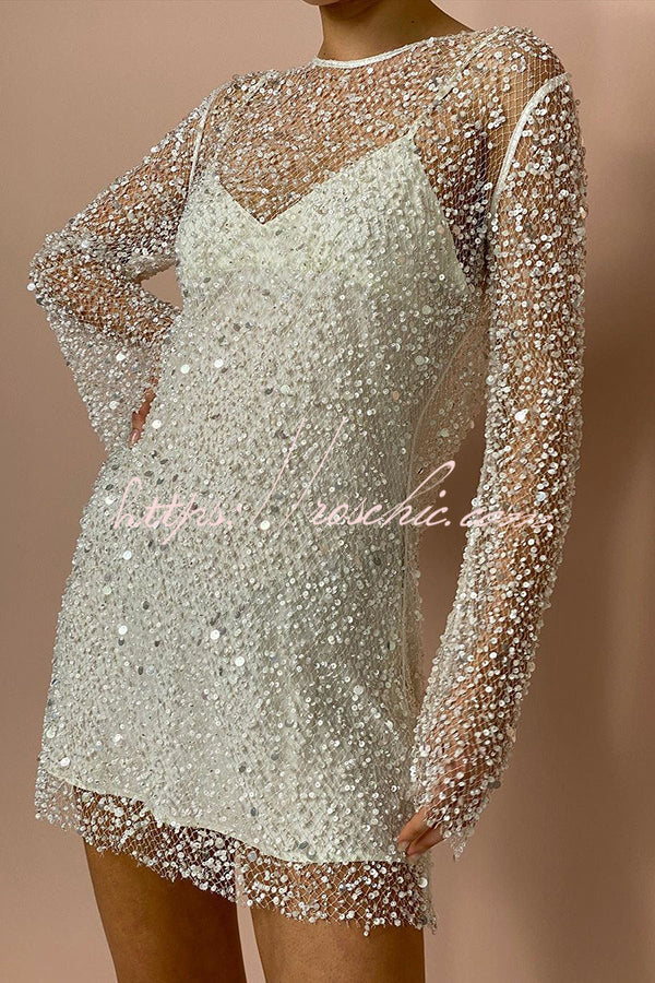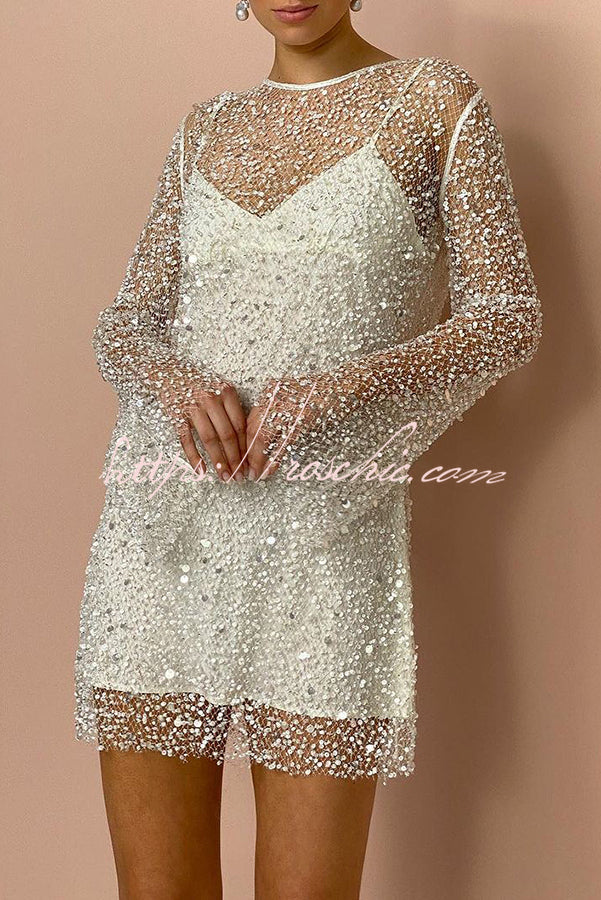 Sparkle and Shine Sequins and Pearls Fabric Mini Dress with Separate Slip