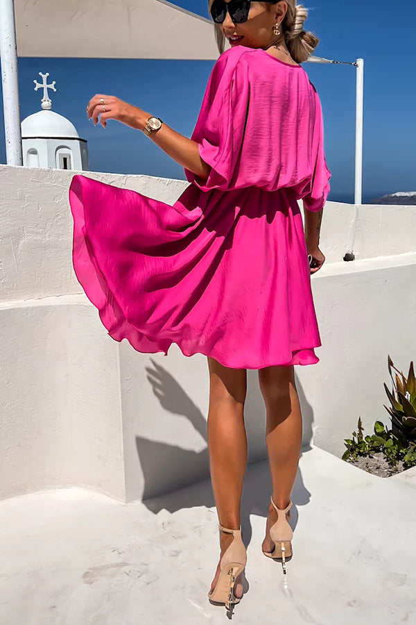 Tell You Something Batwing Sleeve Satin Dress