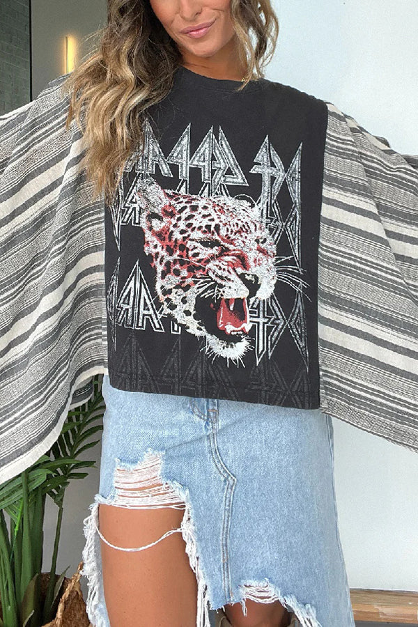 Unique Ethnic Print Batwing Sleeve Loose Top